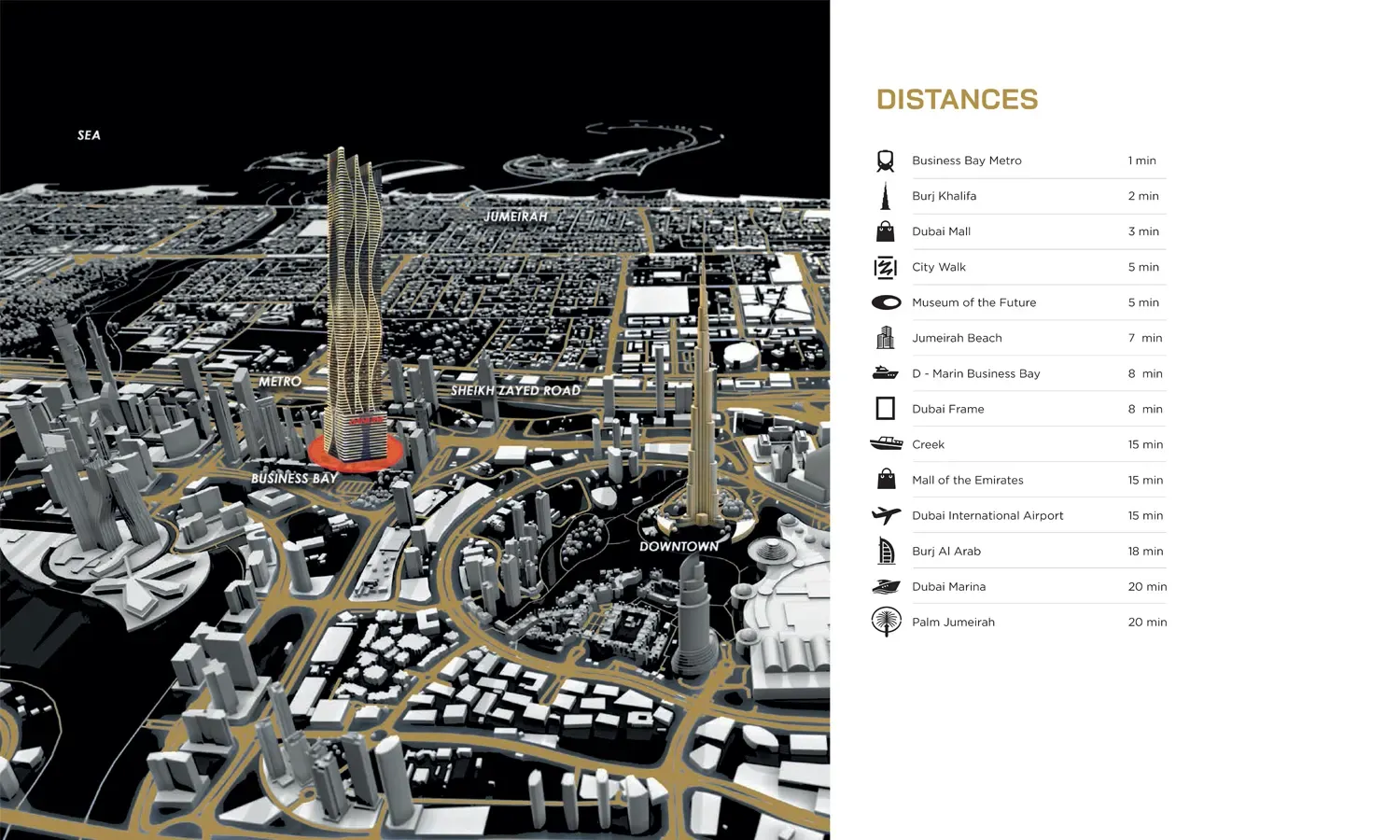 BAYZ 101 is perfectly positioned in Business Bay, one of Dubai’s most vibrant districts, surrounded by a blend of corporate towers, luxury hotels, and lifestyle destinations. With direct access to Sheikh Zayed Road and Business Bay Metro Station within walking distance, residents enjoy smooth connectivity across the city.