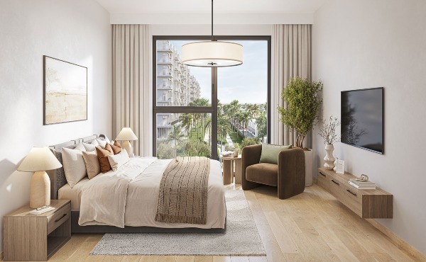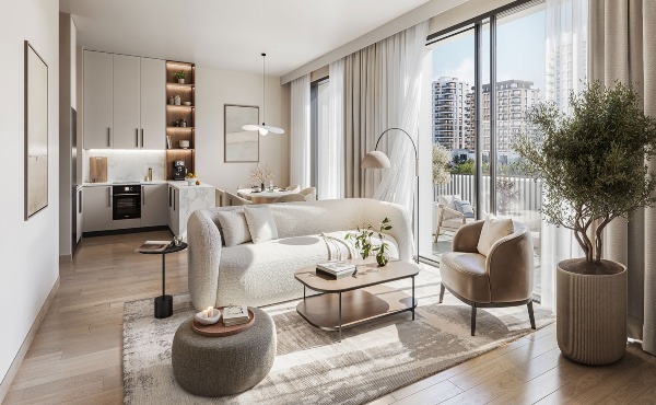 Interiors are finished to a high standard — porcelain floors, built-in wardrobes and contemporary kitchens designed for everyday living. Open-plan living spaces flow to balconies or terraces that face landscaped areas, creating bright, airy homes that feel larger than they are. The design focuses on comfort, durability and low-maintenance luxury.