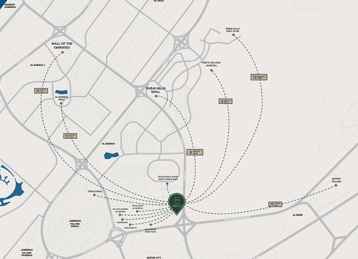 The development’s strategic positioning in Dubai Science Park ensures excellent connectivity to the city’s business districts, shopping malls, and entertainment hubs. Residents will be just minutes from Mall of the Emirates, Burj Al Arab, Downtown Dubai, and Dubai Marina, with both Dubai International Airport and Al Maktoum International Airport within easy reach. The neighborhood’s tech-focused environment adds a progressive and modern character to the community.