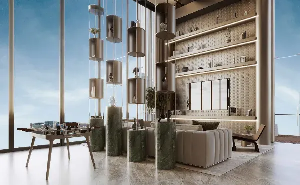 Blending architectural innovation with functionality, the façade features light-filtering design elements, enhancing natural illumination and offering stunning skyline views. Residents can immerse themselves in world-class amenities, including the Paradise Island leisure deck, the Zenith Fitness Center, and the rooftop infinity pool with elegant relaxation lounges. Every detail has been curated to balance physical wellness, mental tranquillity, and social interaction.