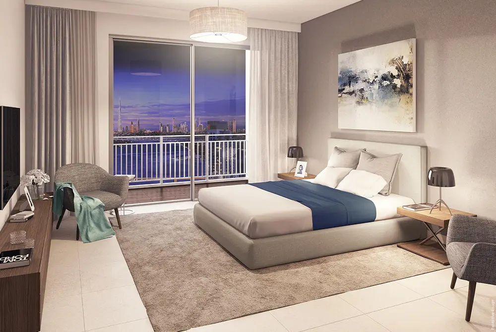 The residences are thoughtfully designed to maximize space, natural light, and panoramic views of Dubai Creek and the iconic skyline. Interiors feature contemporary finishes, high-quality materials, fitted wardrobes, modular kitchens, and elegant bathrooms, creating a refined living environment. Floor-to-ceiling windows and spacious balconies enhance the waterfront experience, blending indoor comfort with outdoor serenity.