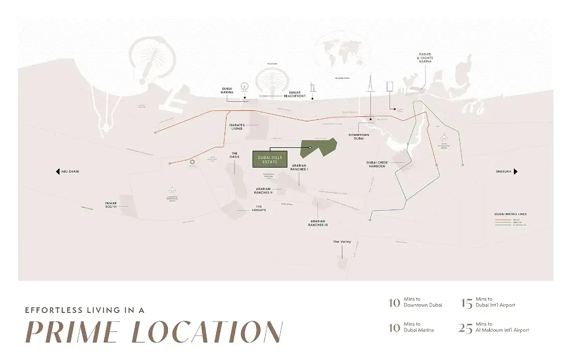 • Minutes from essentials – Near Dubai Hills Mall, King’s College Hospital, and major road networks.