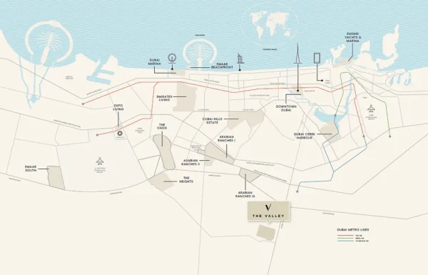 Located in The Valley, with direct access to Dubai-Al Ain Road and major city hubs: