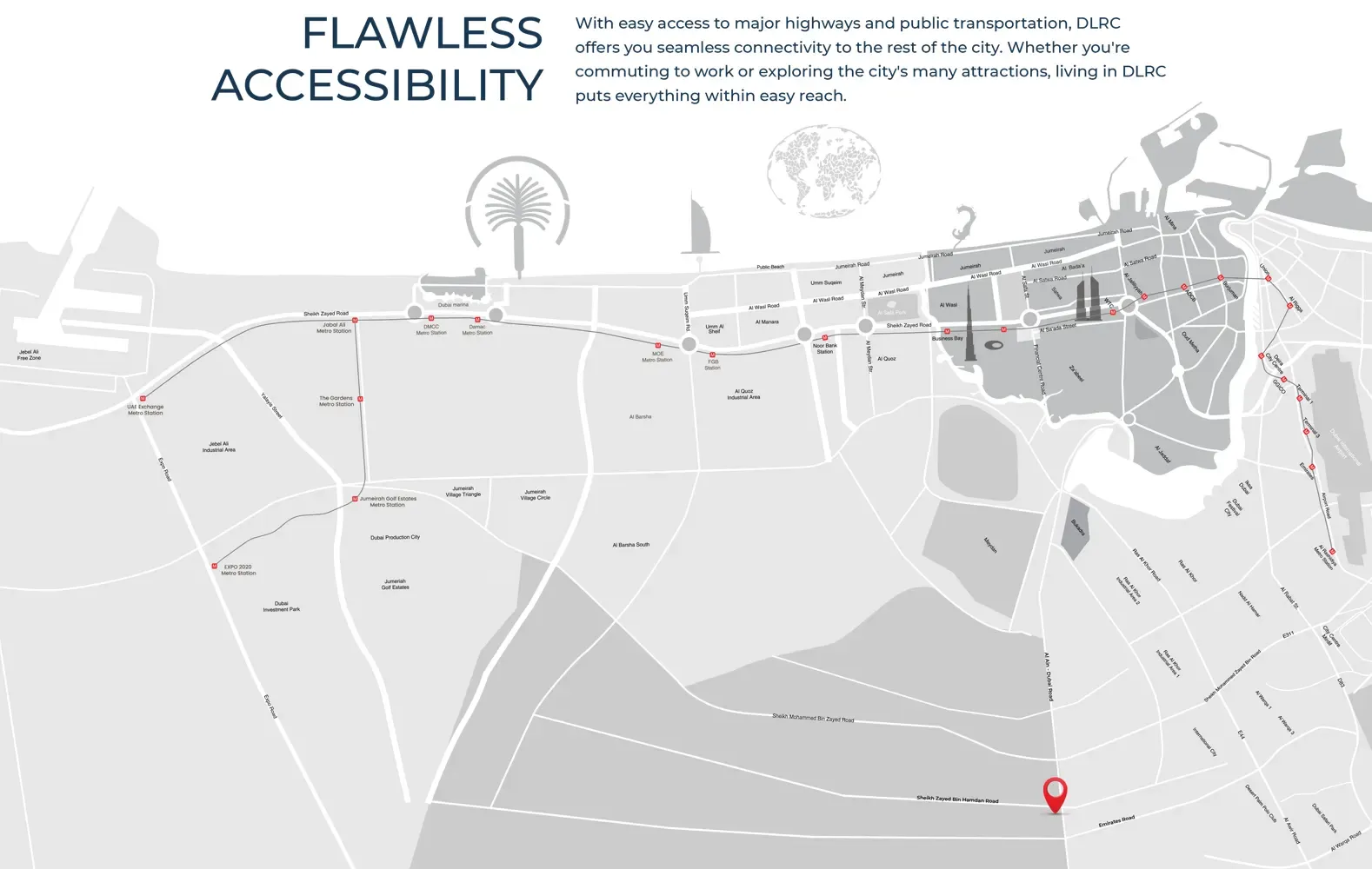 • Location – Prime Dubai Land Residence Complex (DLRC) near schools, malls, hospitals & daily essentials.